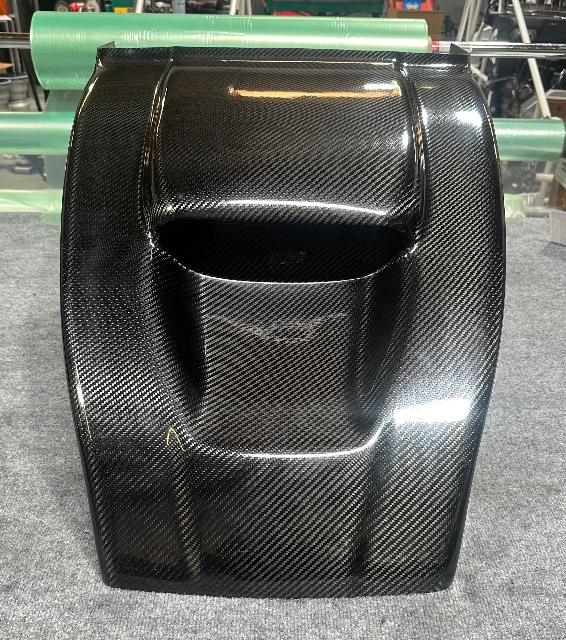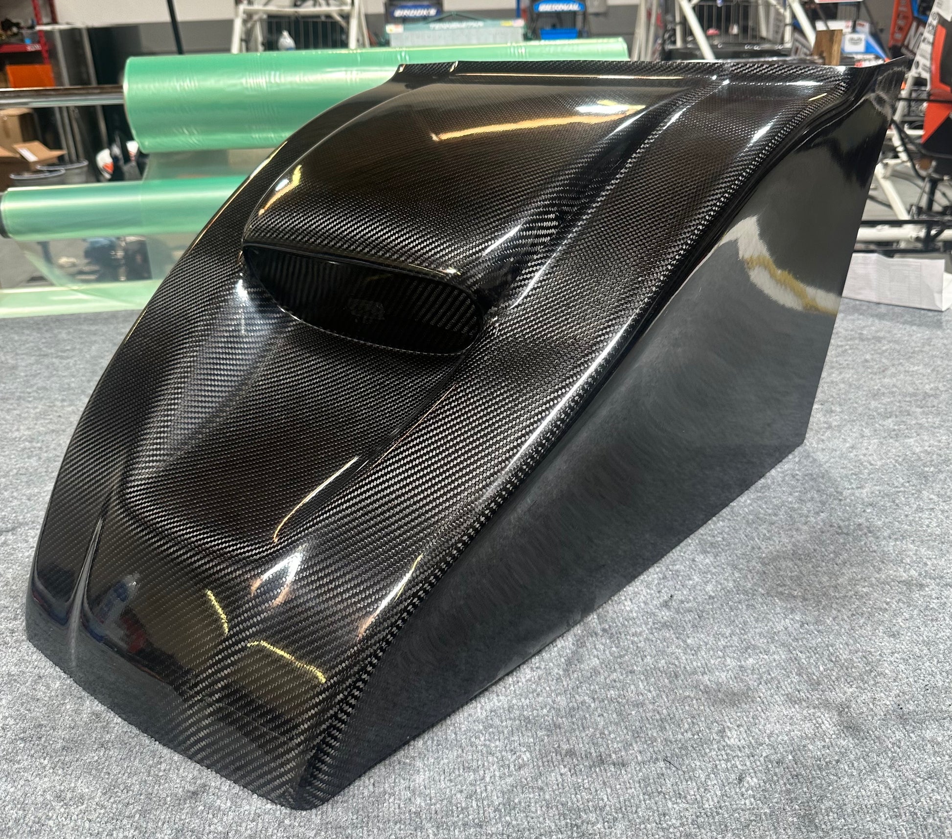 100% Autoclave cured carbon fiber outlaw kart hood. Strong and lightweight, built to withstand the abuse of indoor and outdoor outlaw kart racing. Trim to fit virtually any brand of Outlaw Kart.