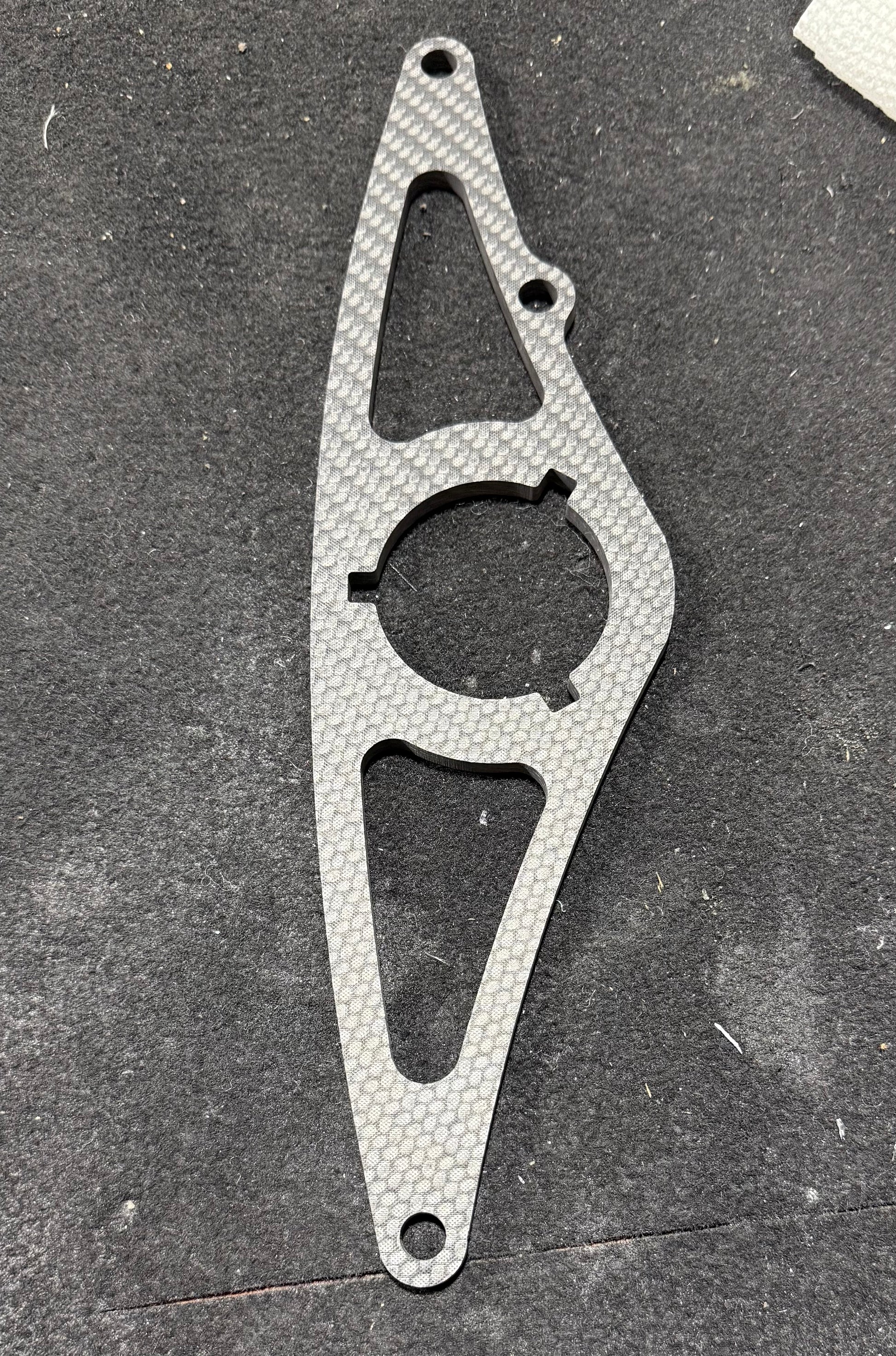 Lighten up your sprint car with this carbon fiber right side steering gear mount.