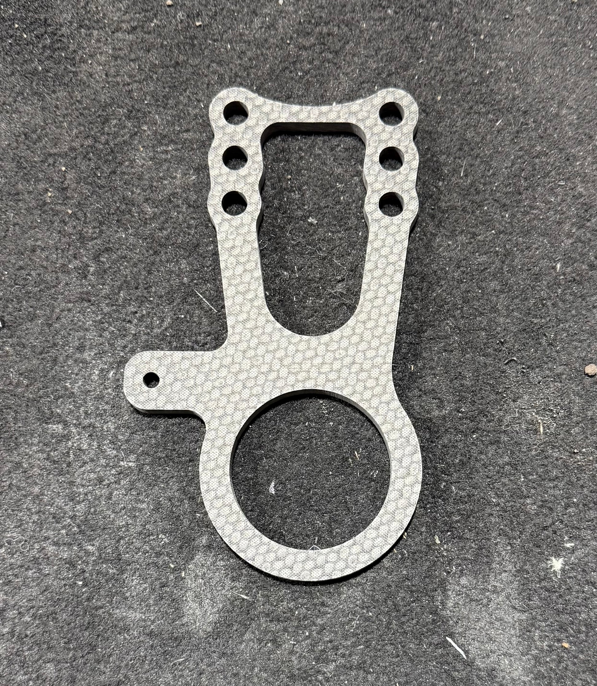 Lighten up your sprint car or midget with this carbon fiber upper steering gear mount/locator.